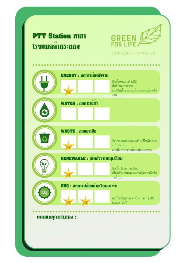 ประเด็นความเป็นมิตรต่อสิ่งแวดล้อมที่ขอการรับรองตาม แนวทางการรับรองผลิตภัณฑ์ที่เป็นมิตรต่อสิ่งแวดล้อม กลุ่ม ปตท. ภายใต้ตราสัญลักษณ์ GREEN FOR LIFE