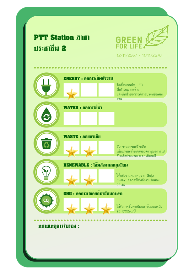 ประเด็นความเป็นมิตรต่อสิ่งแวดล้อมที่ขอการรับรองตาม แนวทางการรับรองผลิตภัณฑ์ที่เป็นมิตรต่อสิ่งแวดล้อม กลุ่ม ปตท. ภายใต้ตราสัญลักษณ์ GREEN FOR LIFE
