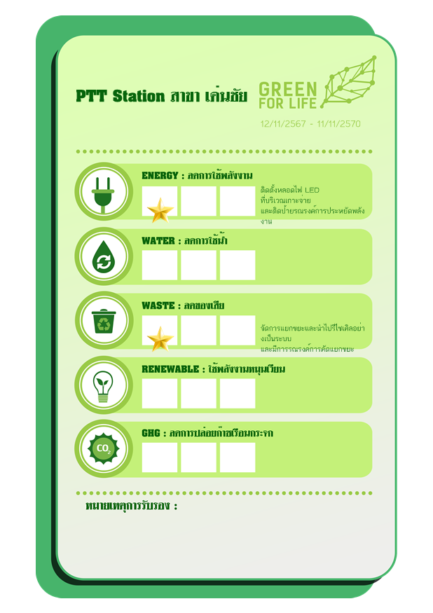 ประเด็นความเป็นมิตรต่อสิ่งแวดล้อมที่ขอการรับรองตาม แนวทางการรับรองผลิตภัณฑ์ที่เป็นมิตรต่อสิ่งแวดล้อม กลุ่ม ปตท. ภายใต้ตราสัญลักษณ์ GREEN FOR LIFE